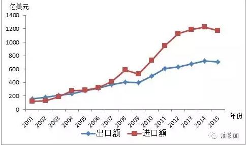 图12001年以来中国农产品进出口额变化