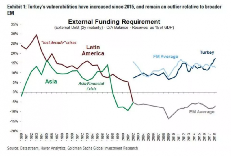 上周五,欧洲央行警告称,土耳其借贷者无法对抗里拉贬值,大概率出现外币债务违约。