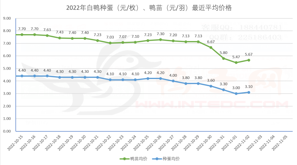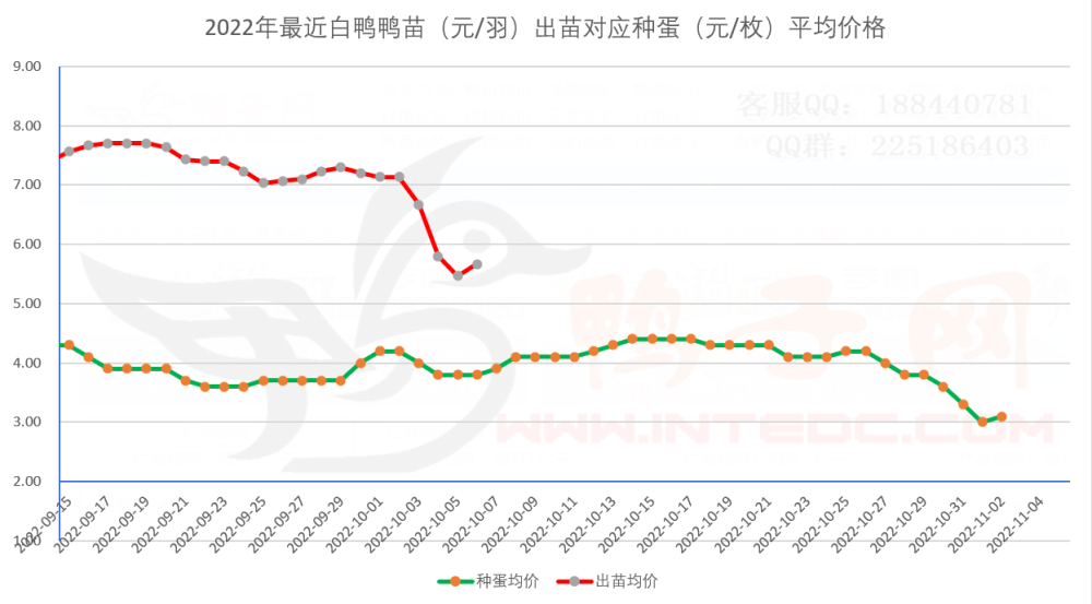 白鸭鸭苗报价上涨,低价对刺激消化的效果甚是明显,但麻鸭、半番苗价均跌;