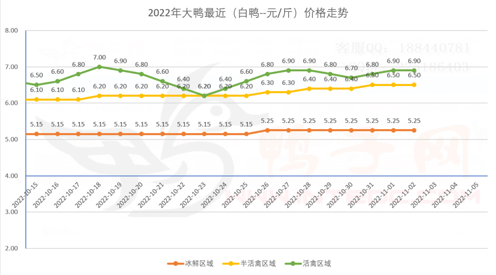 白鸭:活禽区域旱鸭拉盘; 番鸭:稳; 麻鸭:稳; 旱鸭上涨,大局相对稳。