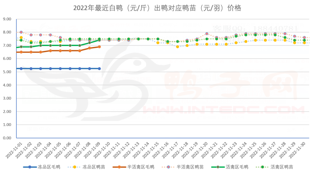 白鸭鸭苗局部报价上涨,其他稳。