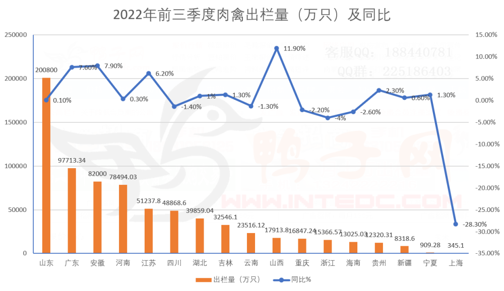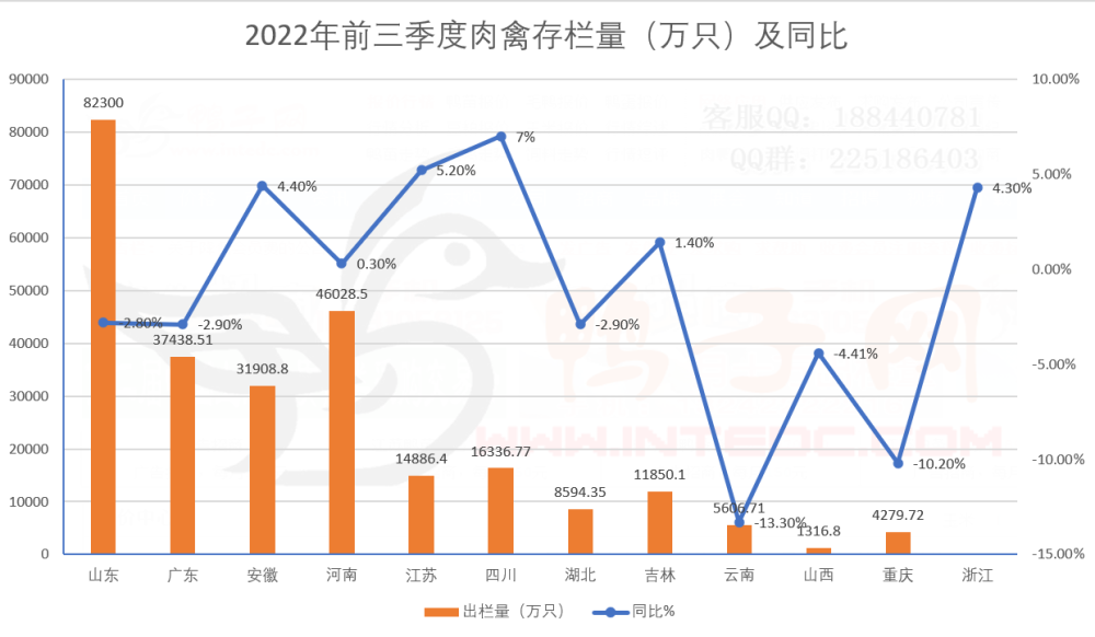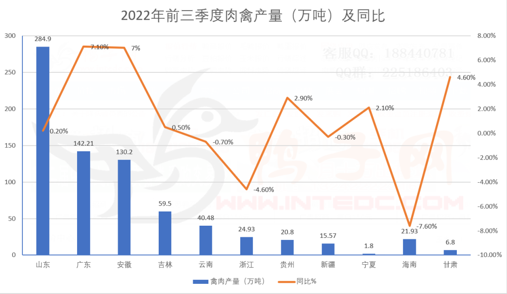 | 禽肉产量(万吨) | 同比% | 占全国比率% | |