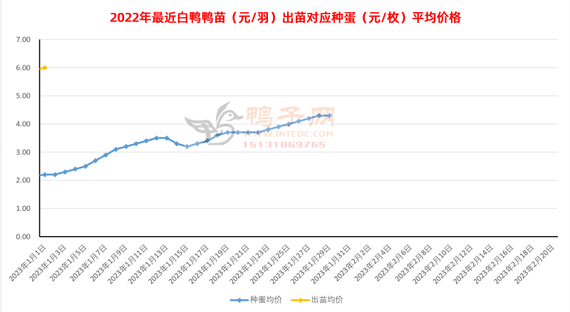 描述:白鸭种蛋报价上涨,种蛋报高走,但高价种蛋比较疲软,主流成交价格从4.7滑到4.5元/枚。