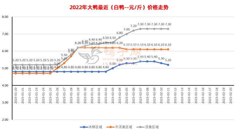 白鸭:相对稳,白鸭存栏量较小; 半番:局部下滑,氛围偏弱; 麻鸭:下跌主导; 当前消费相对还比较疲软(春节假日储备的肉蛋还没彻底消耗完毕),当前天气对养殖造成的损耗较大,病害风险增加。