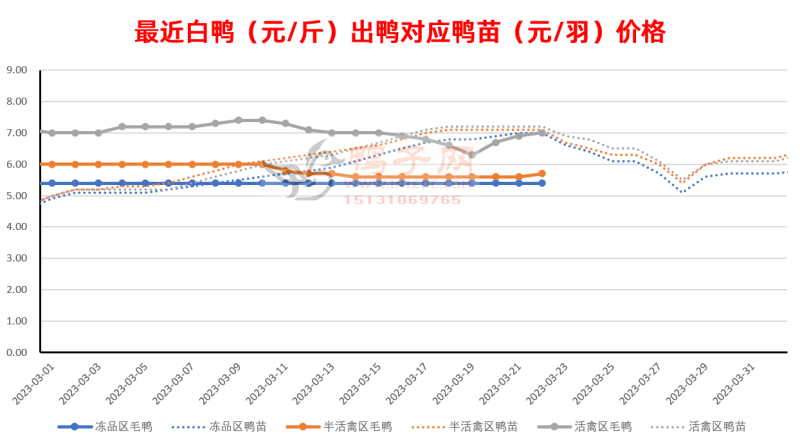 白鸭:活禽区价格旱鸭领涨; 半番(M18):稳; 麻鸭:稳; 活禽区域旱鸭继续上涨,再次成功演绎暴跌暴涨,这样的操盘是不是很熟悉?可以复盘一下2022年末11月以后的行情走势。