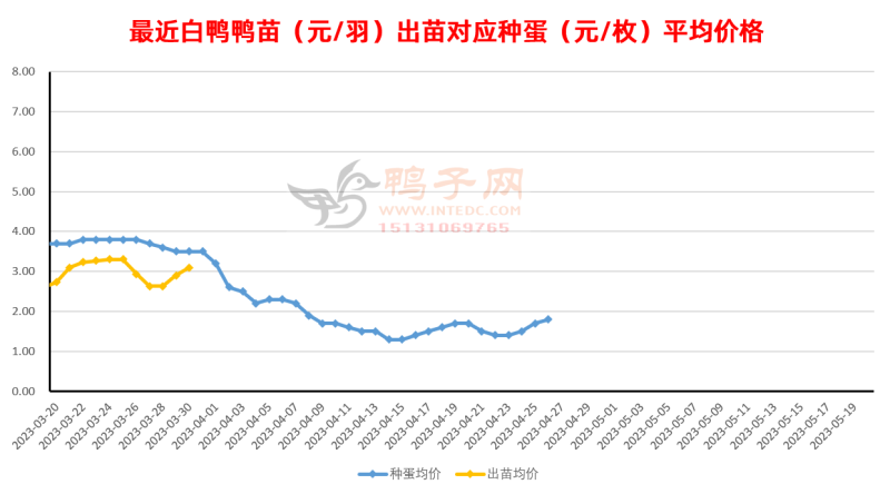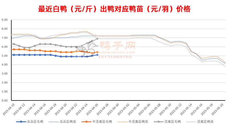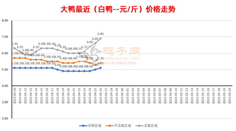 五一假期消费预期,活禽白鸭价格上涨,当前价格对销量的影响还是比较敏锐。