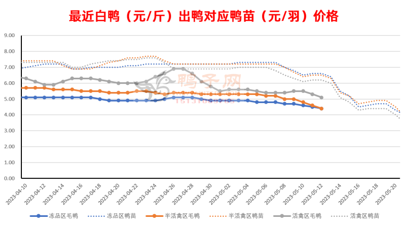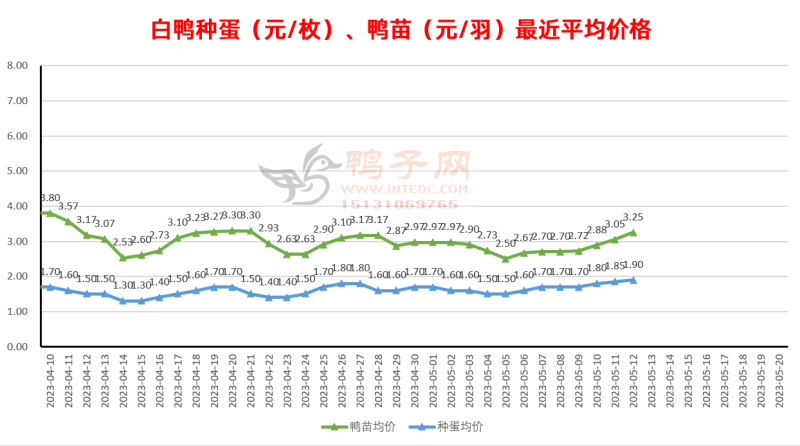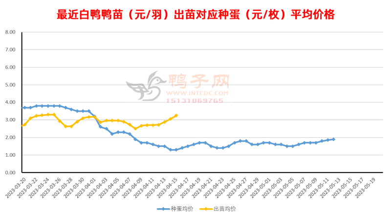 上游--半番、白羽鸭苗上涨,麻鸭苗价重挫。