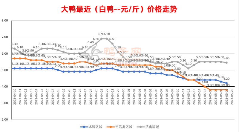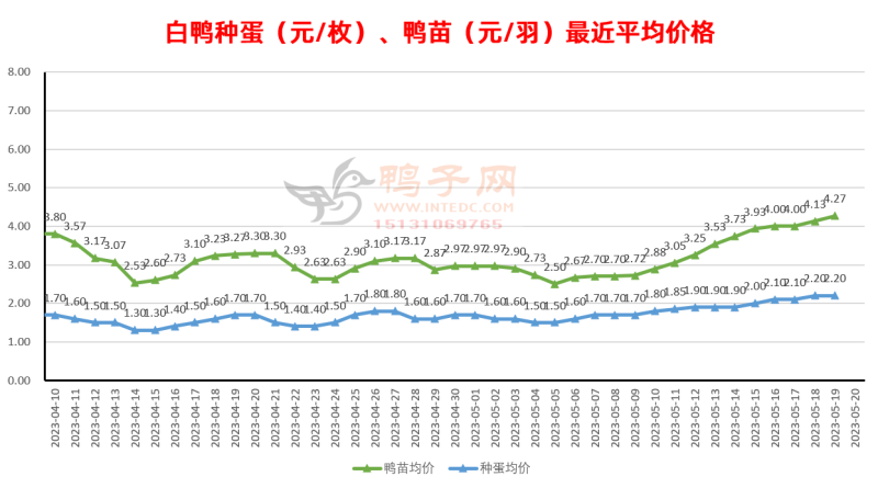 描述:白鸭无鸭可淘。种蛋间歇性炒作。淘汰老鸭或受肉蛋白价格低迷掣肘而下跌。