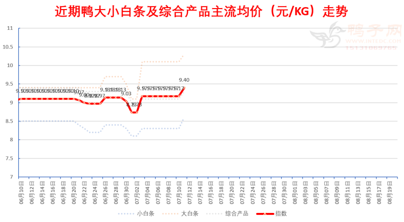 中南部区域白鸭苗全面下跌,麻鸭苗价全面下跌,中南部区域一方面主动阻击外来产能,保护大鸭良性发展,另外一方面回避中元节后出鸭风险,导致苗价下跌。活禽旱鸭报价下跌,目前养殖收益良好。种鸭淘汰积极一般。白鸭种蛋成交清淡报价下跌。白条鸭尤其小白条报价有较大幅度上涨,至于市场消化情况还有待观察,产品筑底特征。