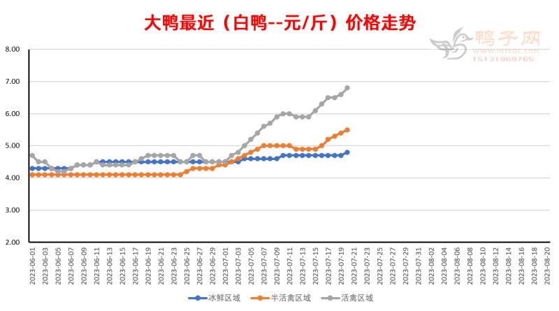 白鸭:中南部区域白鸭报价上涨;