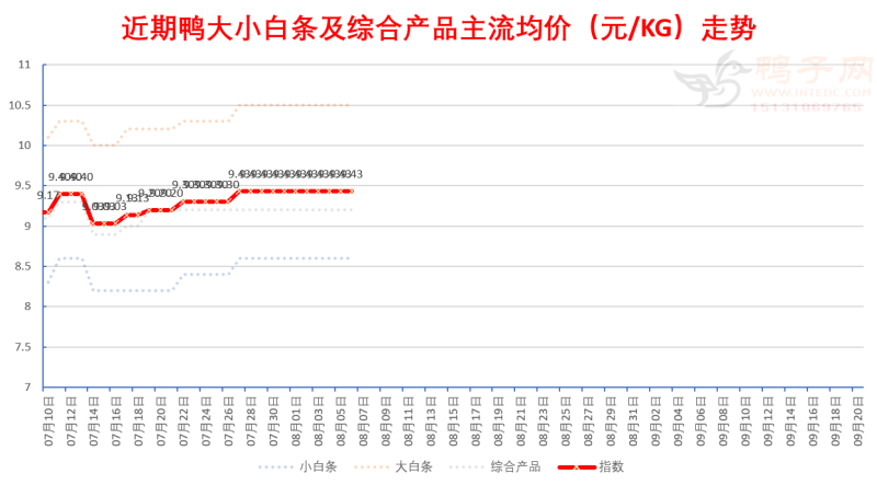 中游--白鸭稳,半番上涨,麻鸭局部调整。