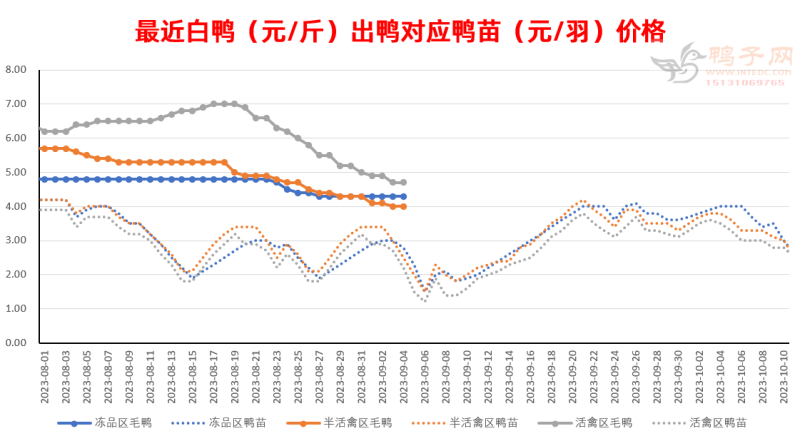 养殖环节活禽区域白鸭依然零星下跌,并且大面积产生恐慌(相当一些区域恐慌卖鸭,三十多天的鸭子也在一片惊恐中出货),白鸭和麻鸭、半番相对差价较大,台风天气影响更是雪上加霜。