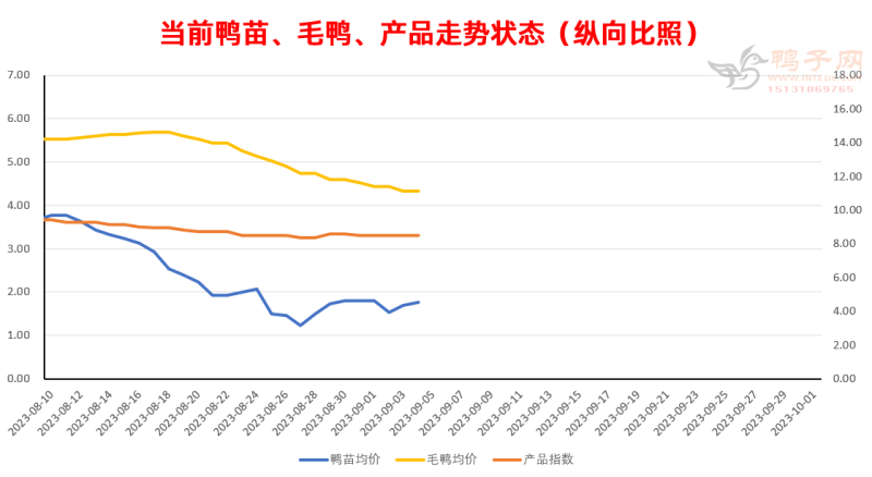 中游--活禽白鸭零星下跌,受台影响加之市场恐慌情绪,白鸭或影响到全局。