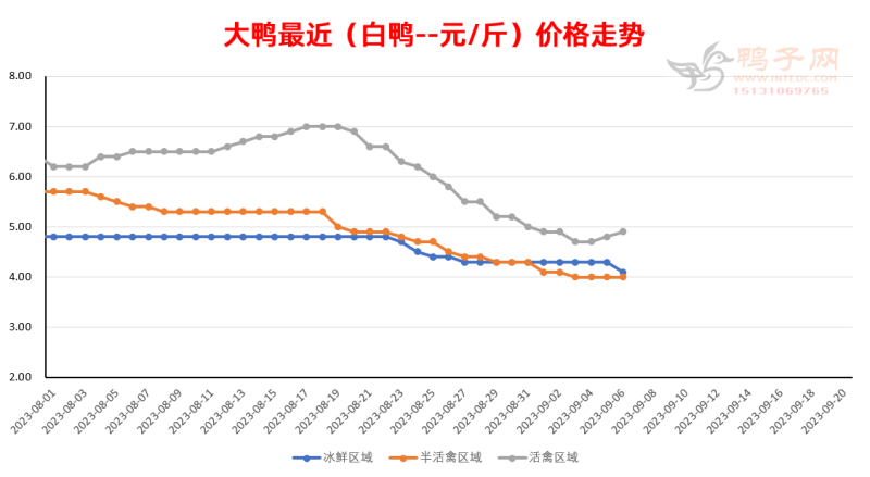 白鸭:活禽区域受水灾较为严重区域行情低迷,其他稳;
