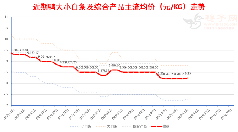白鸭:活禽区域受水灾较为严重区域行情低迷,其他稳; 半番(M18):局部小幅下滑; 麻鸭:局部小幅上涨; 白鸭和麻鸭、半番有畸形价差存在,天气好转后白鸭或好转。