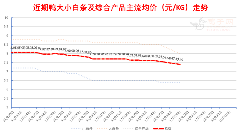 白鸭:活禽旱鸭下跌; 半番(M18):下跌为主; 麻鸭:下跌主导; 报价下跌为主,销量非常低迷。