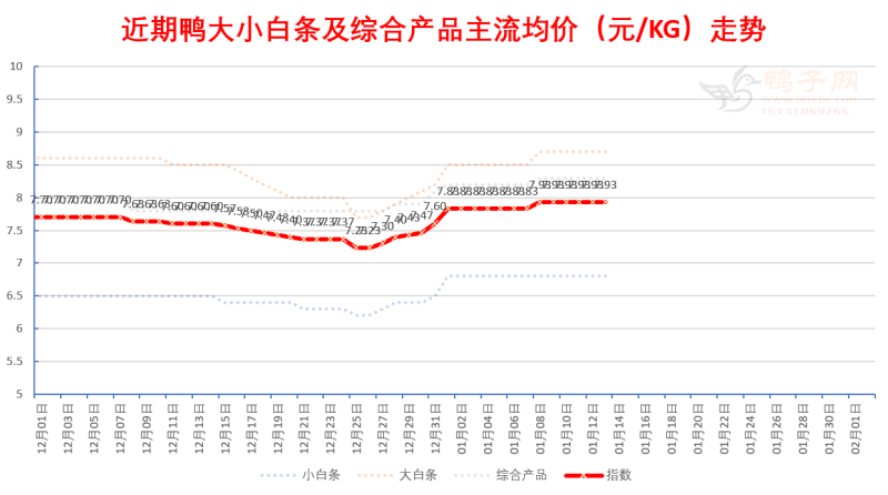 白鸭:白鸭局部上涨,活禽偏强; 半番(M18):稳; 麻鸭:稳; 结构性矛盾突出,白鸭和半番、麻鸭不合理差价状态。