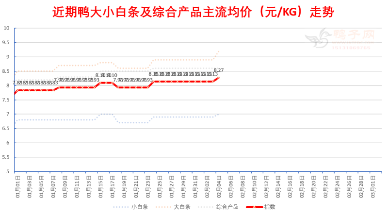 白鸭:活禽区域白鸭大涨; 半番(M18):稳; 麻鸭:稳; 区域性调整,结构性调整,春节假日消费特征。