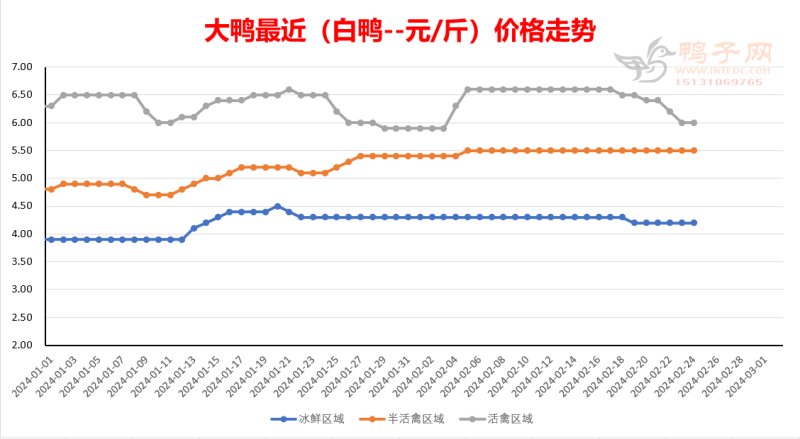 今天白鸭苗报价局部上涨,麻鸭鸭苗报价下跌,半番苗稳,价格在不断验证市场支撑状态。今天北方天气转好,外因对行情的影响渐淡。养殖环节活禽大鸭零星下跌,还下跌预期。鸭产品交易清淡。关联品猪跌,鸡蛋跌,豆粕跌,玉米零星上涨。