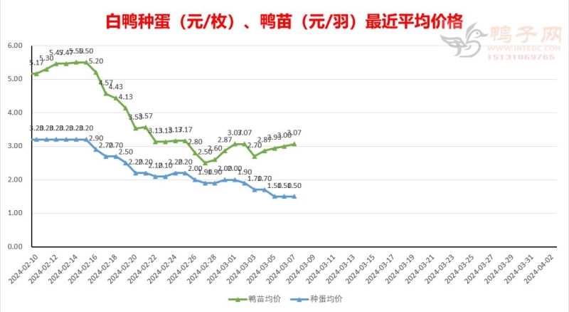上游--白鸭鸭苗局部上涨,半番鸭苗全面上涨。