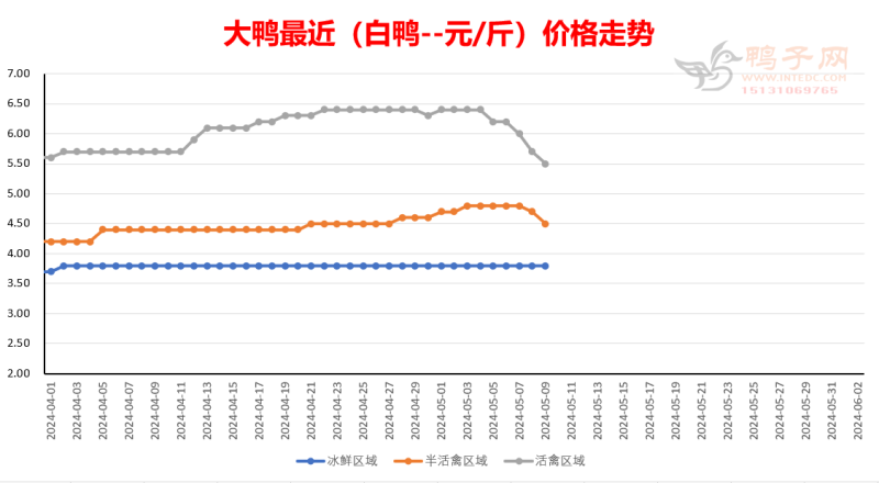 白鸭:活禽半活禽白鸭下跌; 半番(M18):下跌; 麻鸭:弱稳; 活禽半活禽区域大鸭下跌。