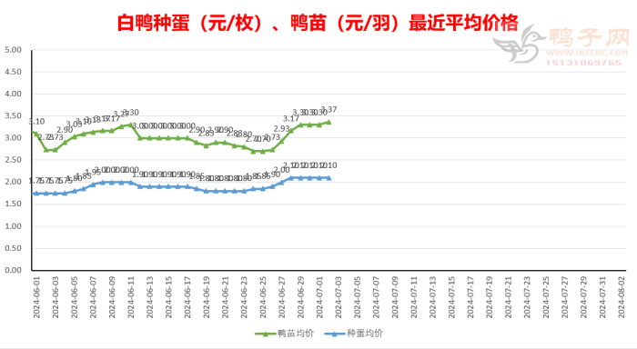 白鸭苗报价上涨,麻鸭鸭苗报价下跌。