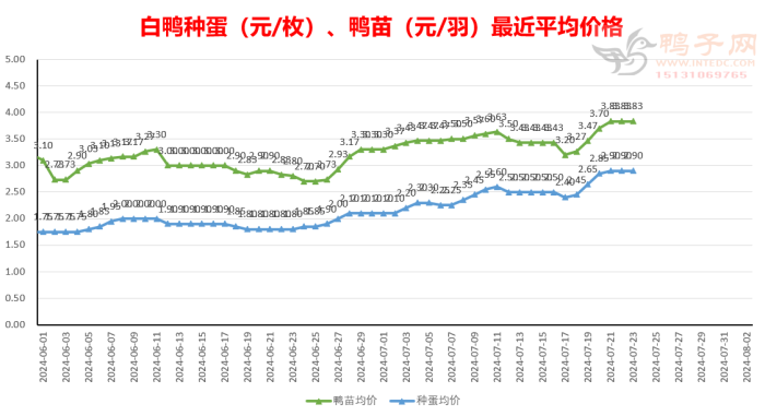 白鸭:稳; 半番(M18):稳; 麻鸭:稳; 稳为主,大部区域养殖收益良好。