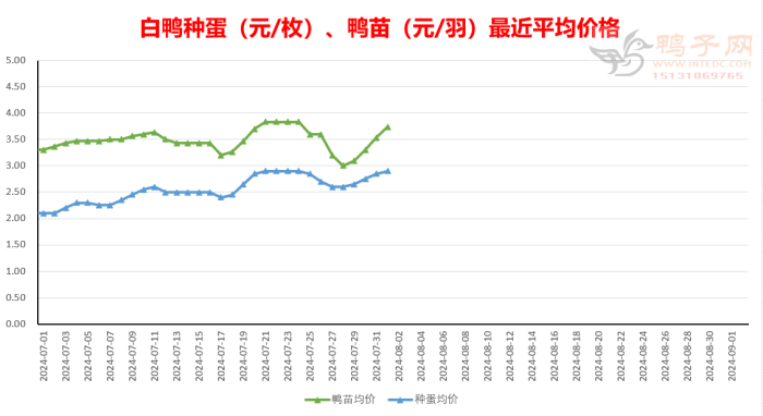 白鸭、麻鸭鸭苗报价上涨,半番、白番鸭苗价下跌。