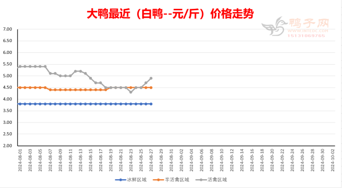 白鸭:广东水鸭报价上涨; 半番(M18):相对稳; 麻鸭:稳; 白鸭行情回暖。
