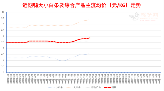白鸭:白鸭大面积上涨; 半番(M18):下跌; 麻鸭:稳; 结构性调整,区域性调整,白鸭走强。