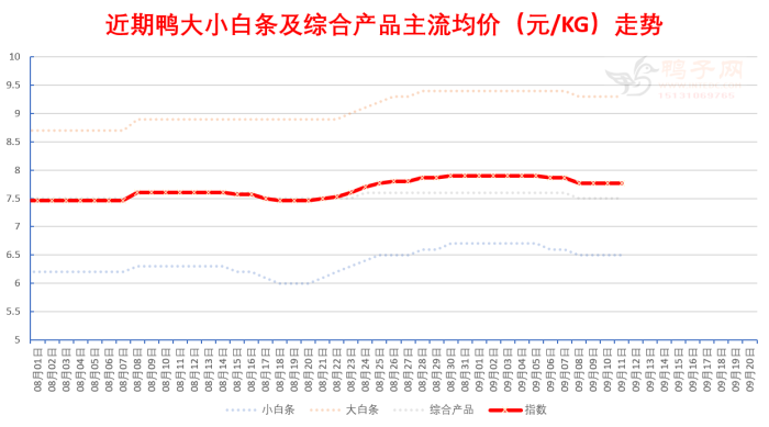 白鸭:活禽上涨; 半番(M18):稳; 麻鸭:上涨; 中秋消费预期下价格偏强主导。