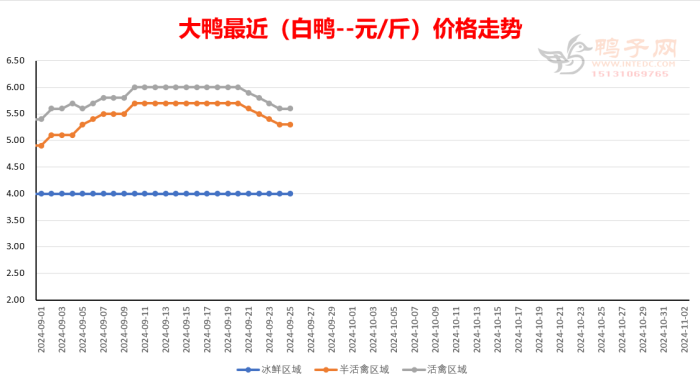 白鸭:局部零星下跌; 半番(M18):弱稳; 麻鸭:局部下跌; 区域性、结构性矛盾突出,活禽国庆消费预期。