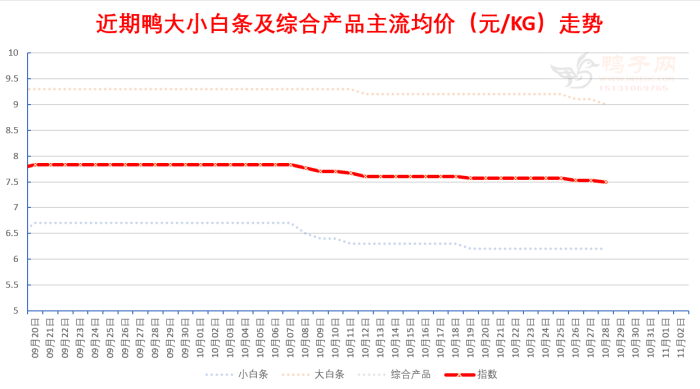 白鸭:广东白鸭下跌; 半番(M18):稳; 麻鸭:稳; 结构性调整,活禽白鸭下跌。