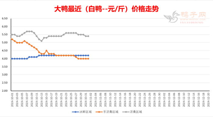 白鸭:活禽白鸭下跌; 半番(M18):稳; 麻鸭:稳; 区域性、结构性调整,活禽白鸭已经要进入亏损状态了。