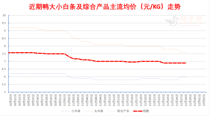 白鸭:稳; 半番(M18):稳; 麻鸭:稳; 相对稳,供求处于较为平衡状态。