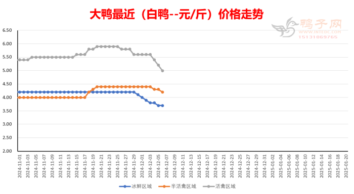 活禽白鸭下跌,终端消费不给力,高价也抑制消费。