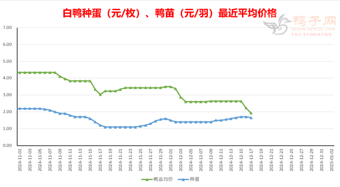 大鸭停放期,白鸭鸭苗报价下跌,白番鸭苗报价上涨,其他品类稳为主。