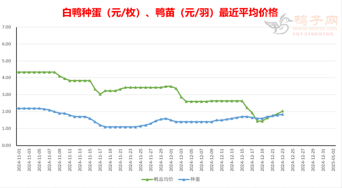 白番、白鸭鸭苗报价上涨,麻鸭鸭苗报价下跌。