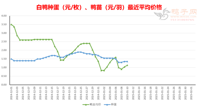 白鸭鸭苗报价上涨,麻鸭鸭苗报价下跌。