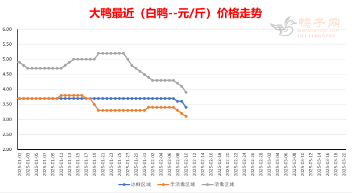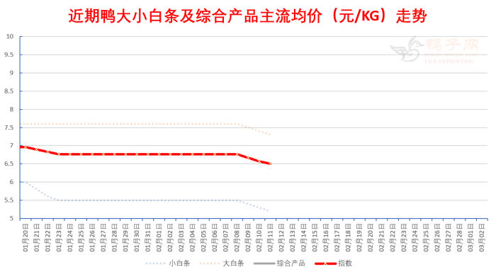 白鸭:活禽下跌; 半番(M18):下跌主导; 麻鸭:下跌主导; 需求非常低迷,相对性过剩明显,行情较为压抑。