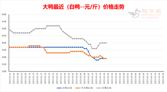白鸭:广东白鸭下跌; 半番(M18):弱态; 麻鸭:稳; 白鸭反弹乏力,整体压抑。