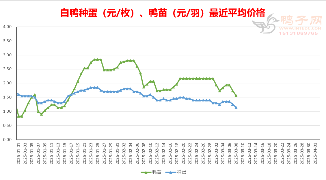 白鸭苗、半番鸭苗报价下跌,其他稳。