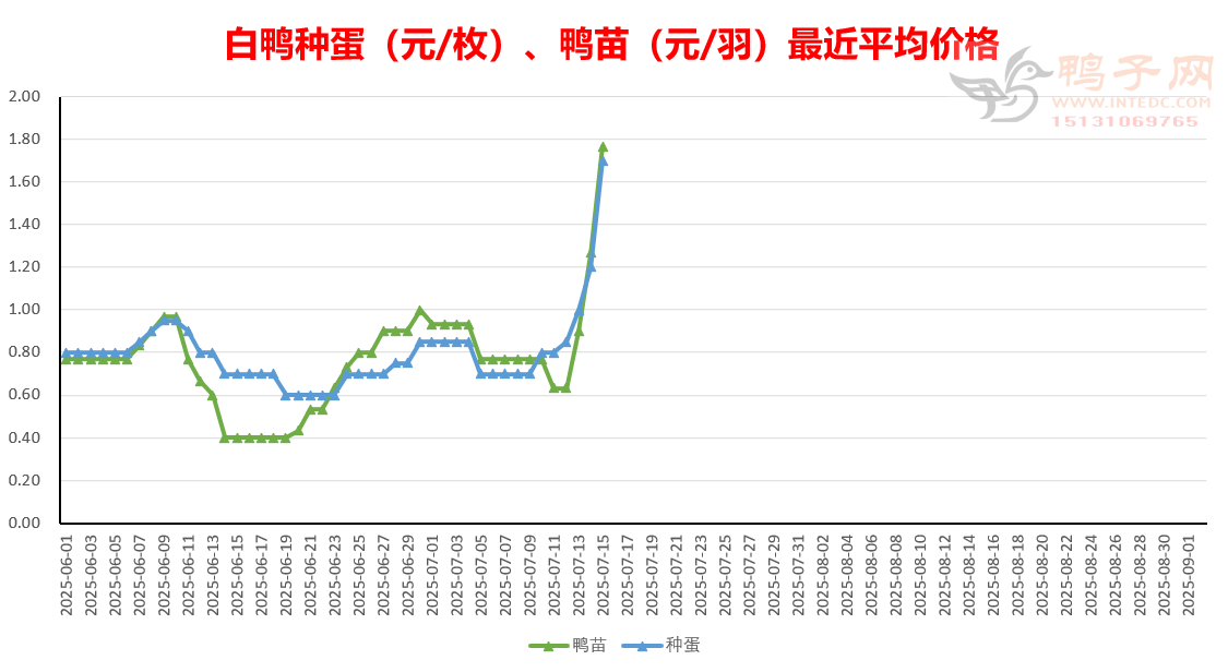 上游--白鸭鸭苗报价上涨,白羽系列低报高走,半番苗报价上涨;