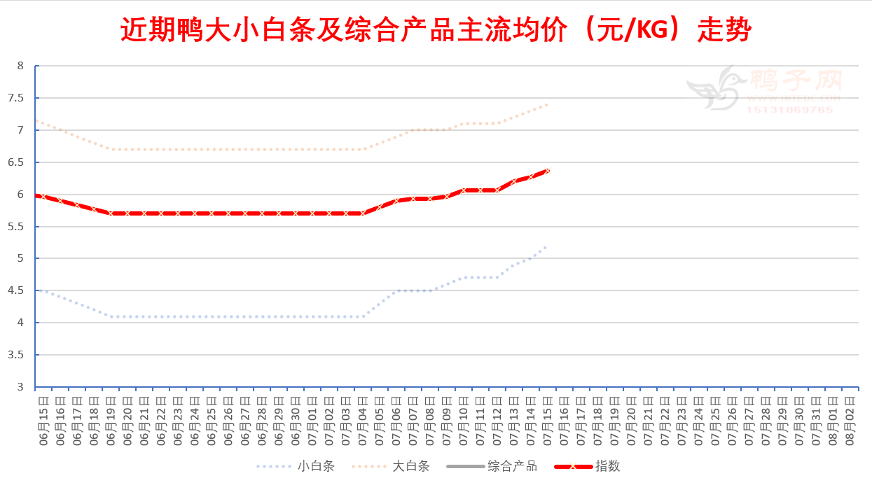 今天鸭苗报价全局性上涨,白羽鸭苗上涨动能放大。白鸭种蛋报价上涨,实蛋平衡,包苗保价间歇性情绪,蛋价高位宽幅震荡。淘汰老鸭报价上涨。养殖环节活禽、半活禽区域大鸭上涨主导,养殖利润非常丰厚,行情强势。鸭产品上涨主导,个别品项价格 上涨烈度很大(几个小时价格涨一次),走货积极。