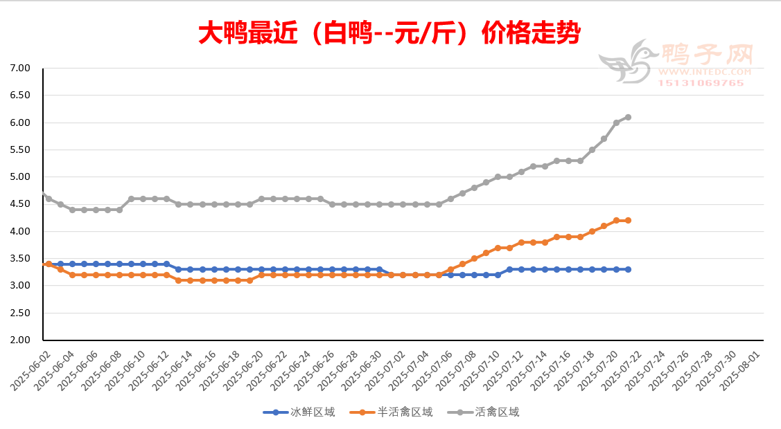 中游--活禽、半活禽白鸭上涨,半番局部上涨;
