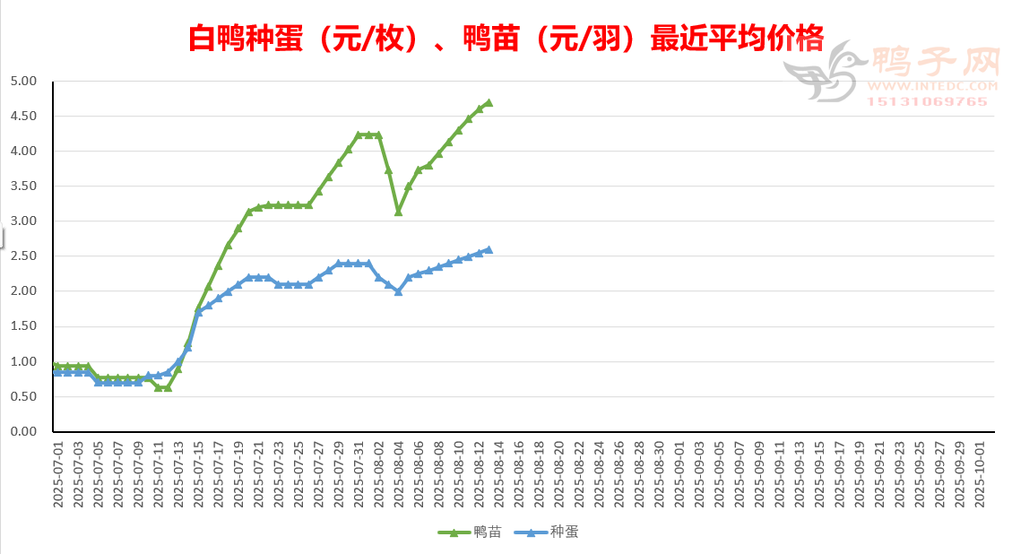 白鸭、麻鸭鸭苗报价上涨,强势格局。