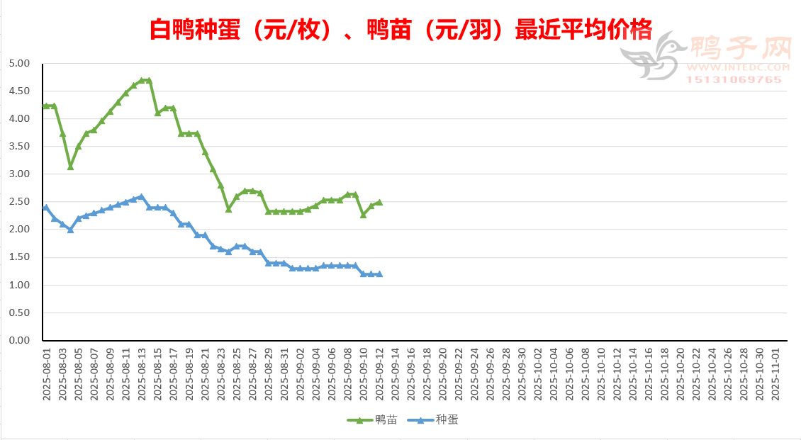 北方白羽鸭苗报稳,其他鸭苗报价以涨为主。白羽苗系列苗强蛋弱。