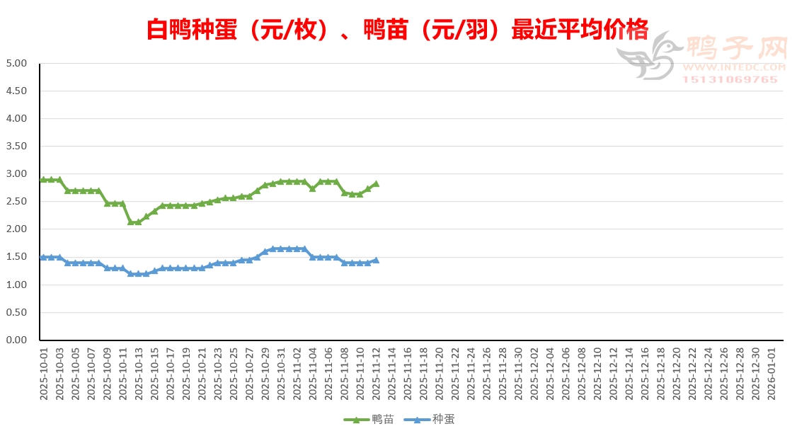 白鸭鸭苗报价上涨,麻鸭苗下跌。