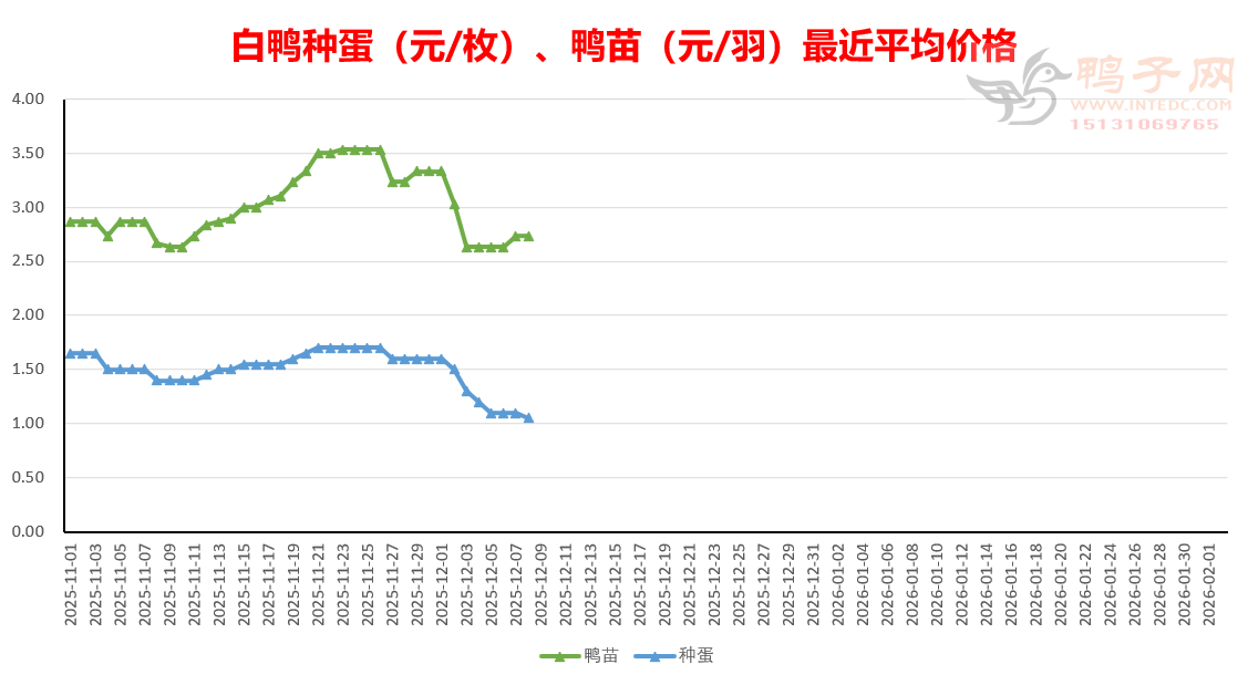 上游--半番苗价下跌。麻鸭、白鸭苗价报涨;